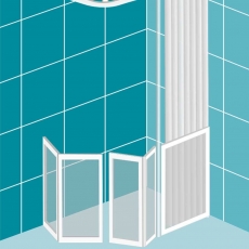 • 400mm fixed half height panel with floor to ceiling pole and a pair of bi-fold doors meeting on corner