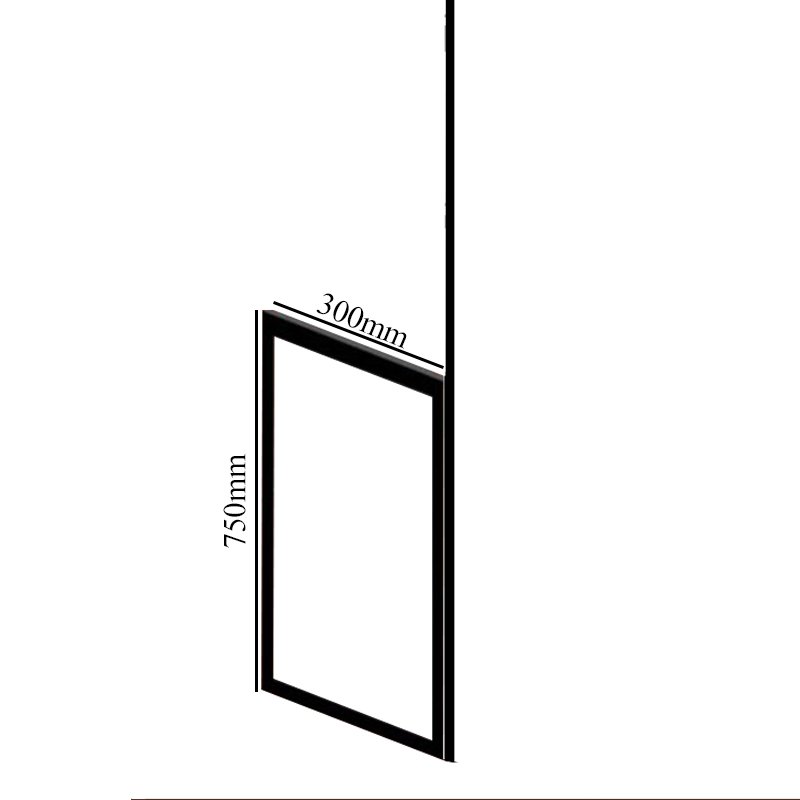 • Fixed 750mm wide half height fixed panel, floor to ceiling pole