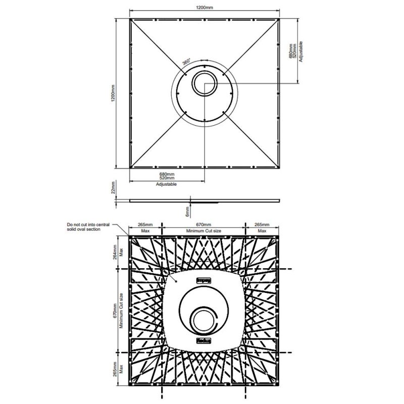 - Strong, self-supporting wet room floor former tray measuring 1200mm x 1200mm