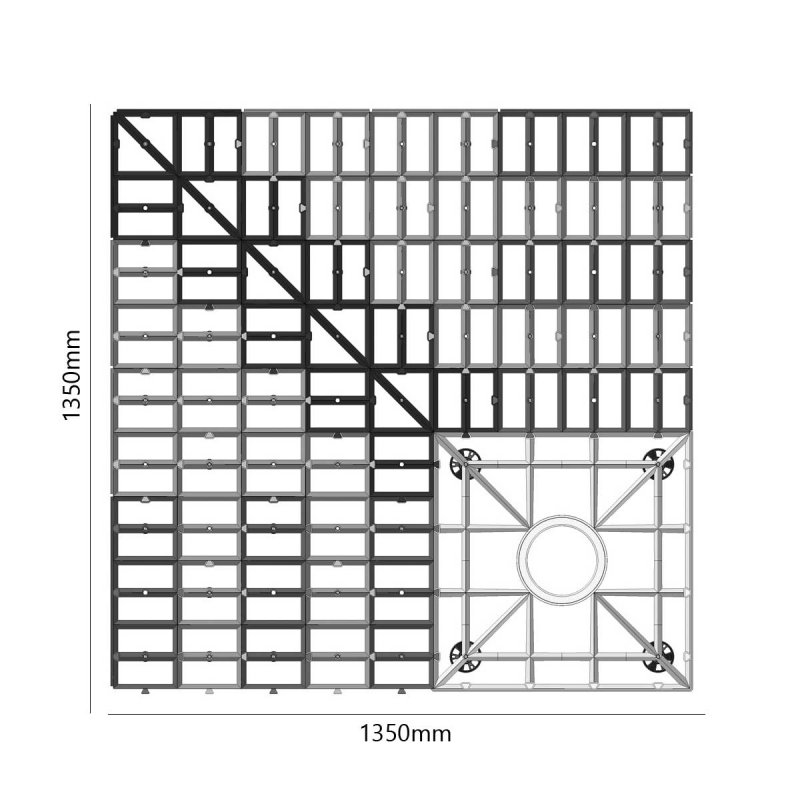 The Impey Level-Grade Modular Wet Room Floor Former 1350mm x 1350mm (for Vinyl Floors) allows anyone to create the perfect drainage gradient with ease. In a screeded concrete floor, creating a consistent gradient used to be a difficult and time-consuming task. The unique, patented design allows graded floors to be installed at the same time as the main floor screed - a huge time saver.