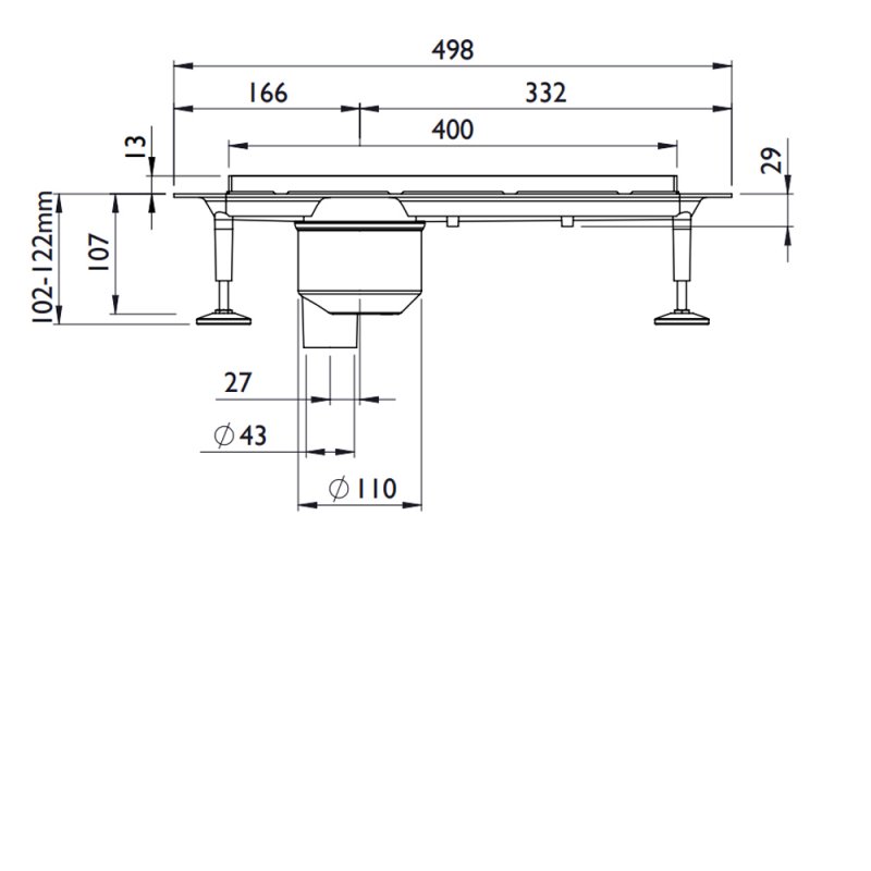 The Impey Linear Drain 400mm, Tile Insert Cover 8mm,Vertical Outlet comes with all Aqua-Dec Linear and Aqua-Grade linear floor formers as standard. Floor formers also come complete with Verticle outlet,has a stylish 40mm wide stainless steel linear drain to create a more defined finish and allow for a higher water flow rate. Height adjustable frame can be easily adjusted to suit tile depths of between 8-10mm.