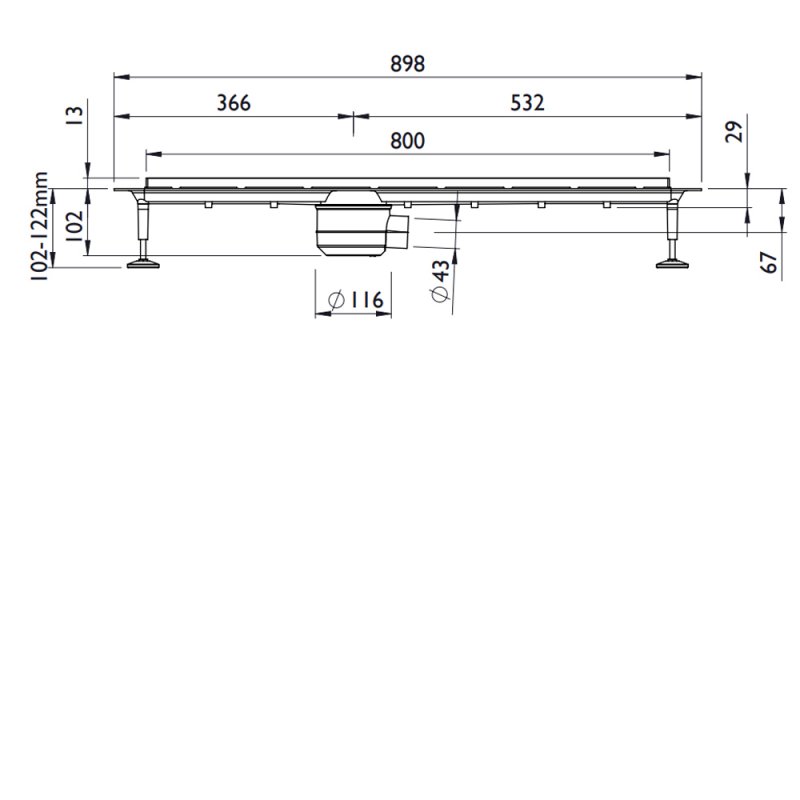 The Impey Linear Drain 800mm, Tile Insert Cover 8mm,Horizontal Outlet comes with all Aqua-Dec Linear and Aqua-Grade linear floor formers as standard. Floor formers also come complete with Horizontal outlet,has a stylish 40mm wide stainless steel linear drain to create a more defined finish and allow for a higher water flow rate. Height adjustable frame can be easily adjusted to suit tile depths of between 8-10mm.