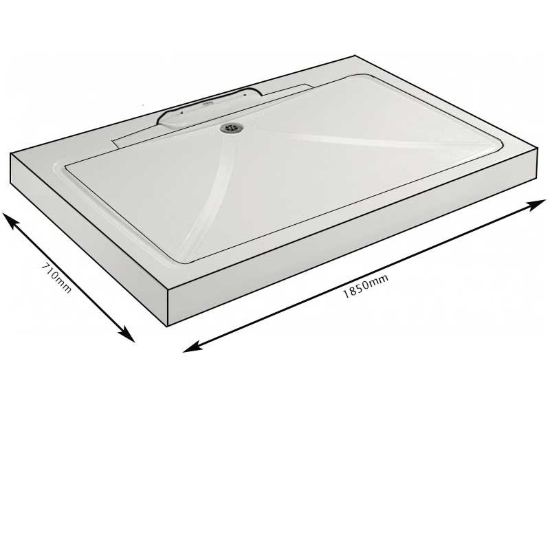 Impey Mendip Rectangular Shower Tray with Waste 1850mm x 710mm with Cut to Length End Caps - White