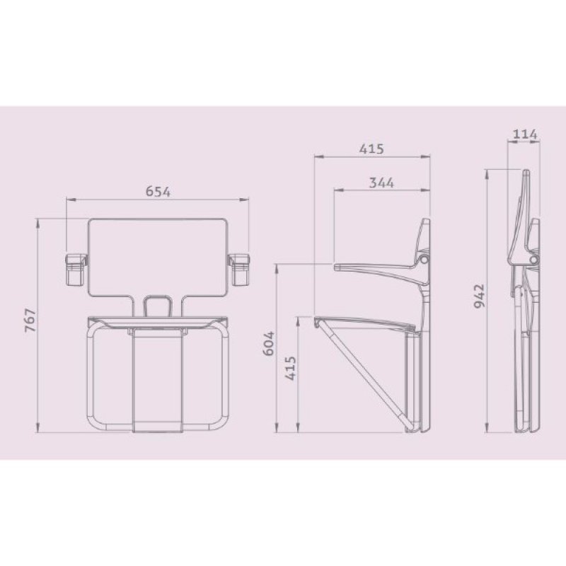- Slim design fits closely to the shower wall - only protruding 114mm when folded