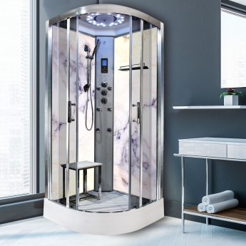 Insignia's elegant Marble Edition collection builds upon their popular Platinum range, with the addition of luxurious marble-effect back panels to create an entirely new look. This quadrant model is available in 3 popular sizes: 800mm, 900mm and 1000mm. Each option can be customised to include black, grey or white marble back panels.