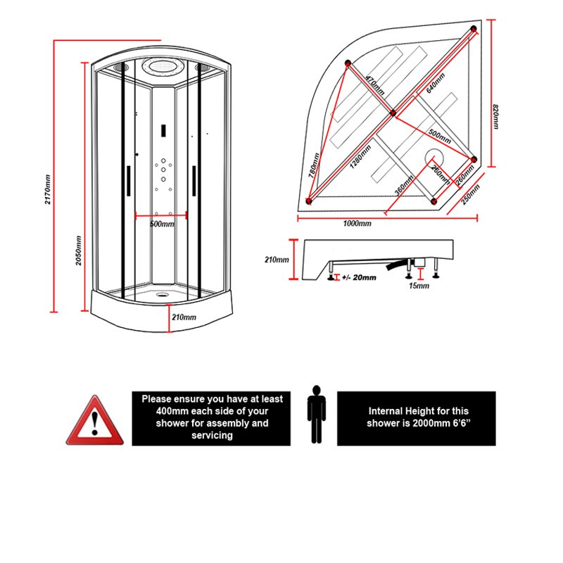 Insignia Platinum Quadrant Non Steam Shower Cabin 1000mm x 1000mm - Black Frame