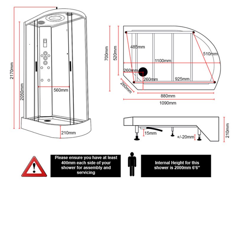 Insignia Platinum Offset Quadrant Non Steam Shower Cabin 1100mm x 700mm LH - Black Frame