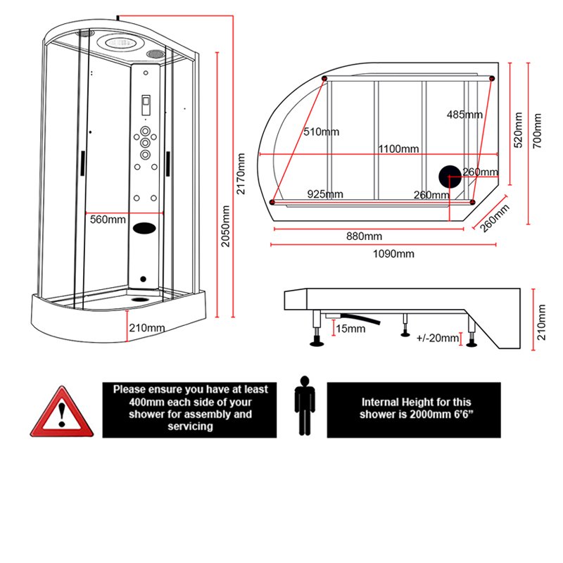Insignia Premium Offset Quadrant Steam Shower Cabin 1100mm x 700mm RH - Chrome Frame