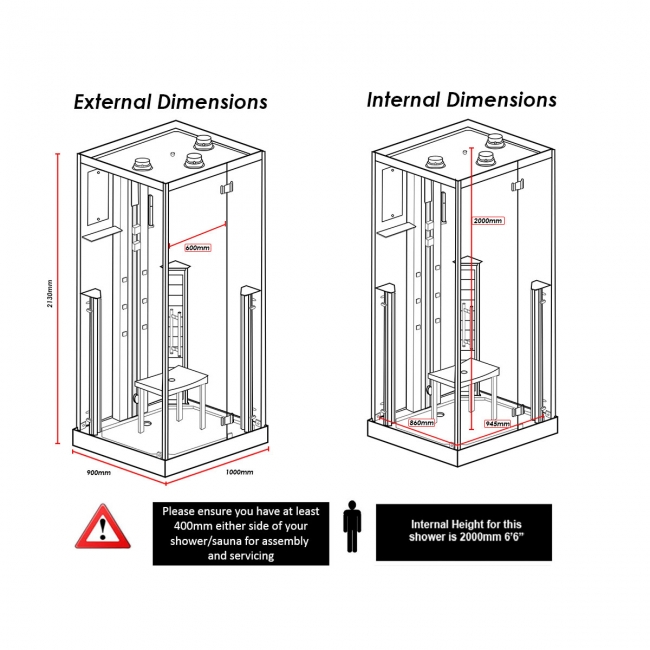A large high-flow 100 nozzle monsoon showerhead, allows you to completely immerse yourself in calming water from head-to-toe. Whether you wish to cleanse before your steam session or cool down afterwards. Take a seat and relax as shrouds of calming steam envelop your senses and soothe aching and tired muscles.