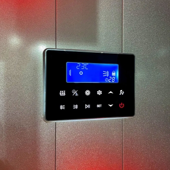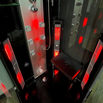 The KYS900 features a fully tempered glass enclosure bringing a sense of light and openness to any interior. With lustrous midnight black back panels adding a sophisticated designer aesthetic. The interior is elegantly lit by stylish overhead chromatherapy lighting, setting the scene for a calming and tranquil space. This Insignia sauna features 3 far infrared heaters for a superior class of sauna made from only with the finest quality components. The nature of far infrared light, penetrates the skin up to 30mm, providing a deeper feeling of relief to muscles and joints, often to lasting effect. A pleasant and comforting heat radiates throughout, helping you to switch off so you can truly unwind and rejuvenate.