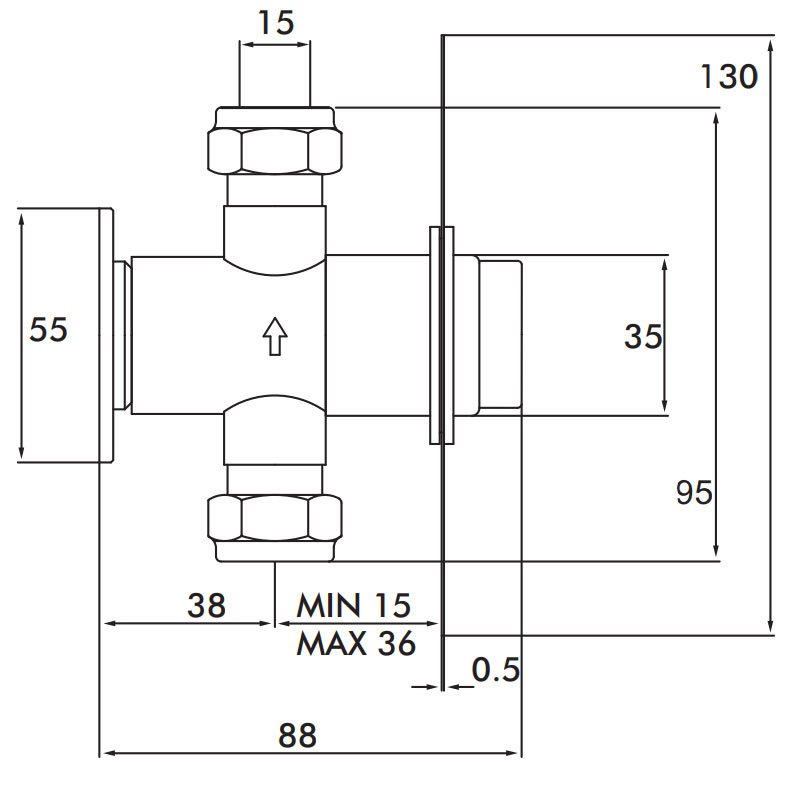 - Inlet connections: 15mm compression