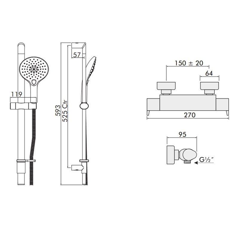 Shower Kit Height 593mm