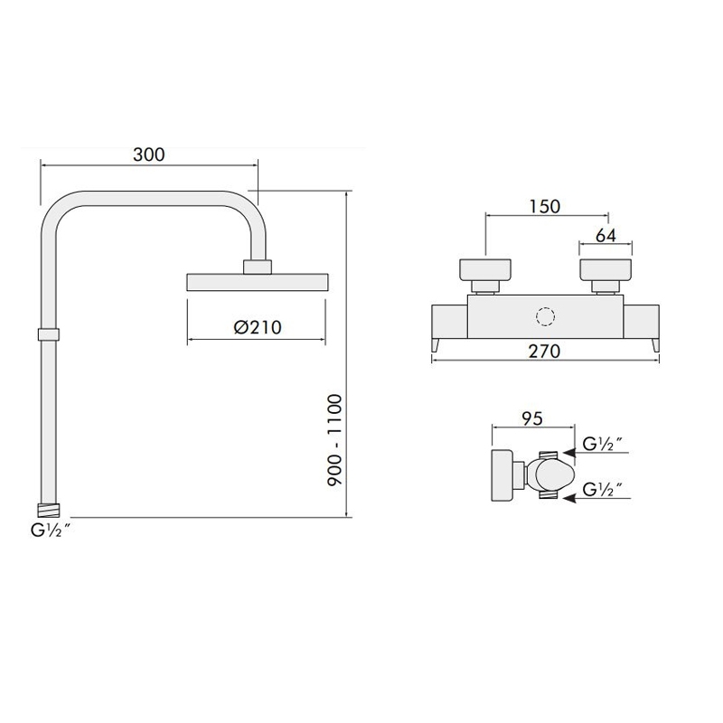 Inta Enzo Safe Touch Thermostatic Dual Outlet Bar Mixer Shower with Shower Kit Inta Enzo Safe Touch Thermostatic Dual Outlet Bar Mixer Shower with Shower Kit