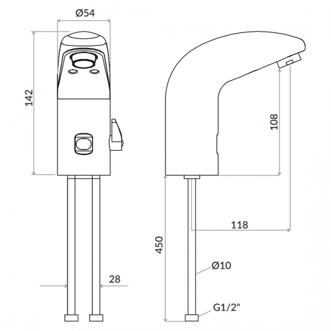Delivering water without contact with the tap is an ideal solution where hygiene is paramount, such as public toilets and washrooms. The users presence is detected by an Infrared sensor which controls a solenoid valve to turn on a timed flow of water. This tap has been designed for use with an approved Inta thermostatic mixing valve.