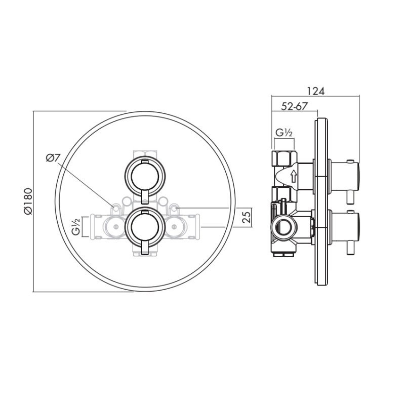 Inta Kiko Thermostatic Concealed 1 Outlet Shower Valve Dual Handle - Chrome | Thumbnail Image Inta Kiko Thermostatic Concealed 1 Outlet Shower Valve Dual Handle - Chrome
