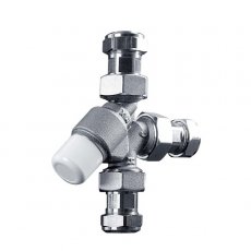 The Intatec range of 15 and 22mm thermostatic mixing valves is designed primarily for single outlet use. It delivers safe, blended hot water to taps, showers, bidets and other water outlets, making it ideal for use in hospitals, schools and leisure centres. The element that controls the temperature of the mixed water discharging from the valve works proportionally on both hot and cold water supplies in order to maintain the temperature of the mixed water discharged.