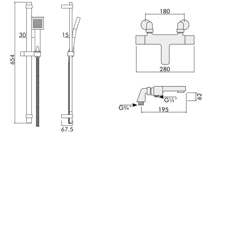 • Outlet connection : G1/2 (Shower) G3/4 (Bath)