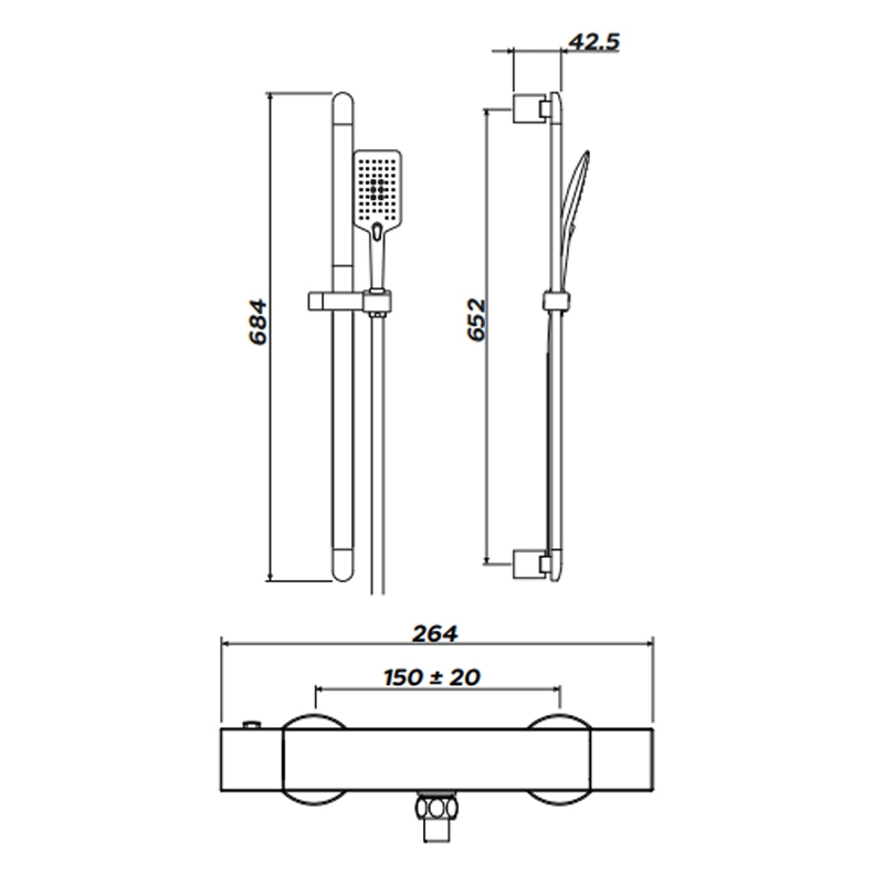 Inta Nulo Deluxe Safe Touch Thermostatic Bar Mixer Shower with Shower Kit