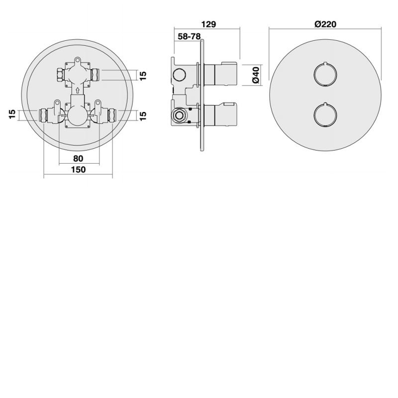 Inta Puro Thermostatic Concealed 1 Outlet Shower Valve Dual Handle - Chrome | Thumbnail Image Inta Puro Thermostatic Concealed 1 Outlet Shower Valve Dual Handle - Chrome