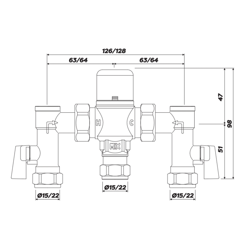 Intamix Thermostatic Mixing Valve 22mm with Service Valves | Product Image Intamix Thermostatic Mixing Valve 22mm with Service Valves