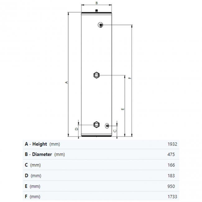 • Cylinders under 200ltrs are not supplied with a secondary tapping