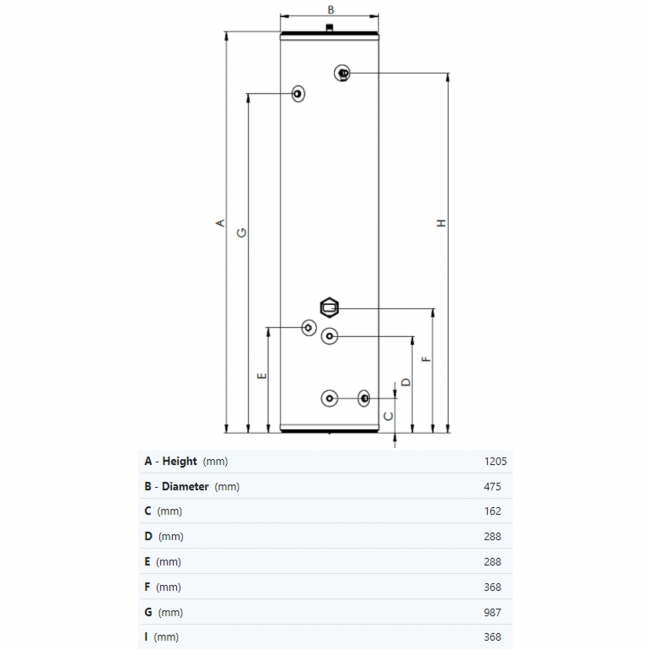 • Cylinders under 200ltrs are not supplied with a secondary tapping