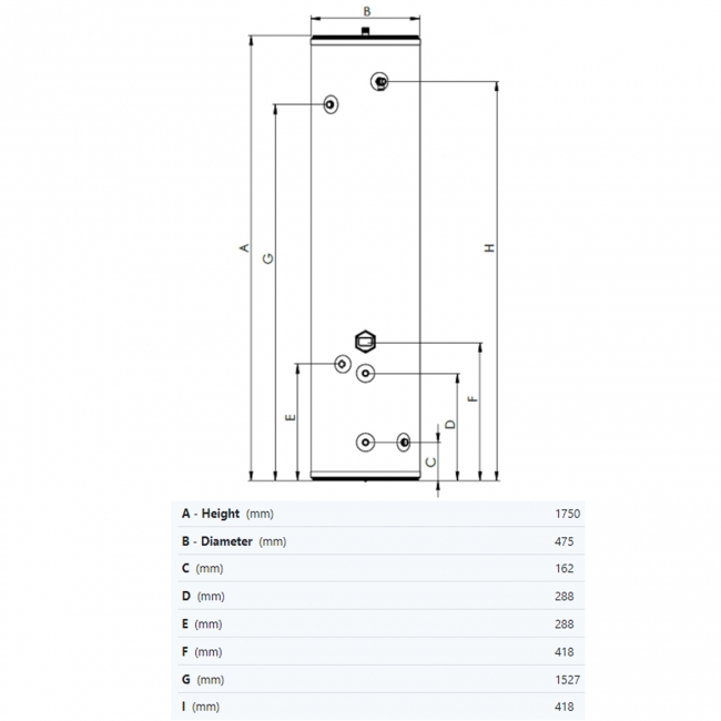 • Cylinders under 200ltrs are not supplied with a secondary tapping