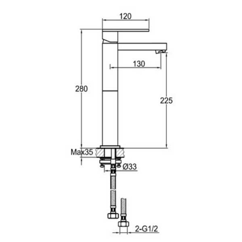 Tap Base to Spout Reach225mm