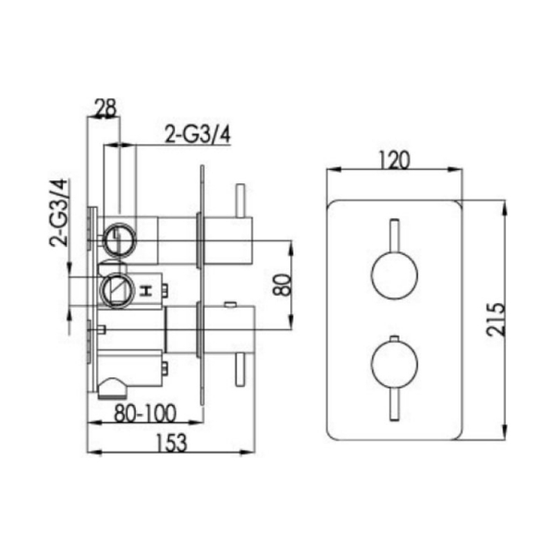 JTP Florence Concealed Shower Valve with Diverter Dual Handle - Chrome