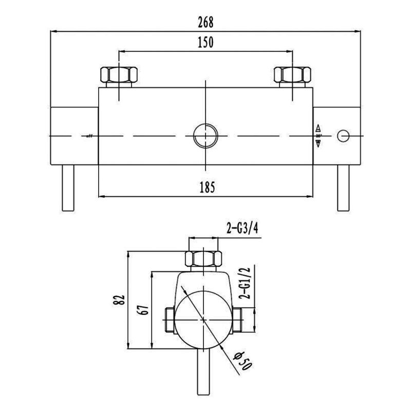 JTP Florence Bar Shower Valve 2 Outlets Dual Handle - Chrome
