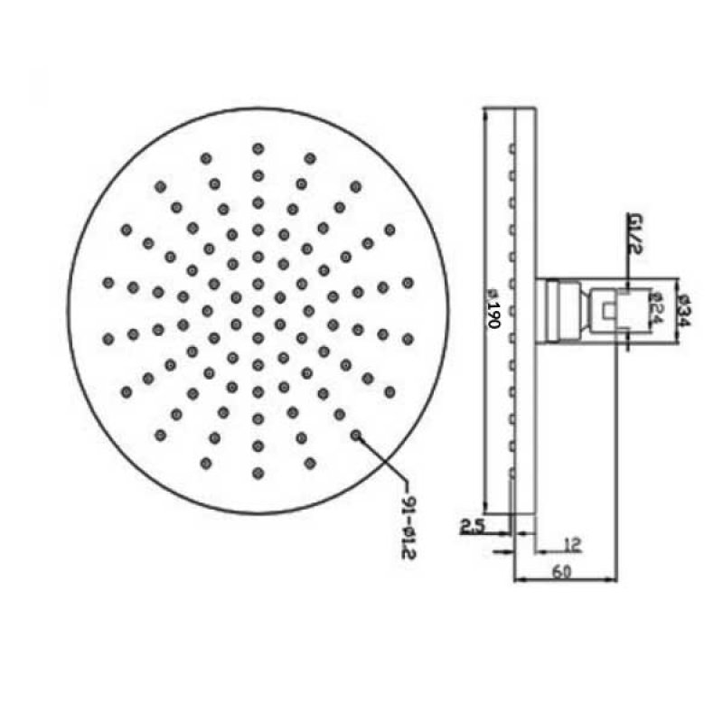 JTP Boker Round Fixed Shower Head 190mm Diameter Chrome