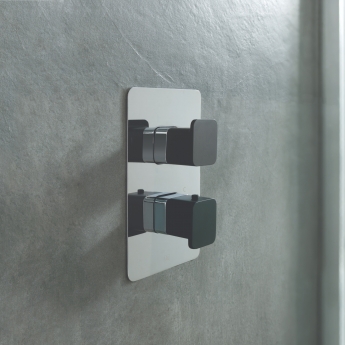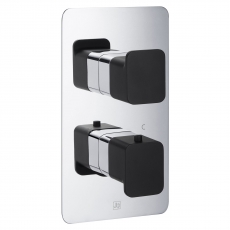JTP Axel Vertical Thermostatic Concealed 2 Outlets Shower Valve Dual Matt Black Handle - Chrome