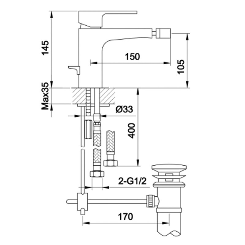 JTP Base Bidet Mixer Tap with Pop Up Waste - Chrome | Product Image JTP Base Bidet Mixer Tap with Pop Up Waste - Chrome