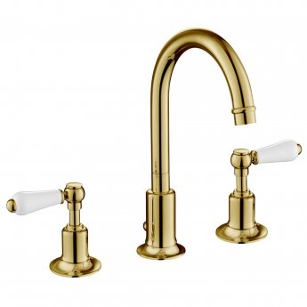 JTP Grosvenor Basin Mixer Tap with Pop Up Waste Pinch Handle - Polished Gold