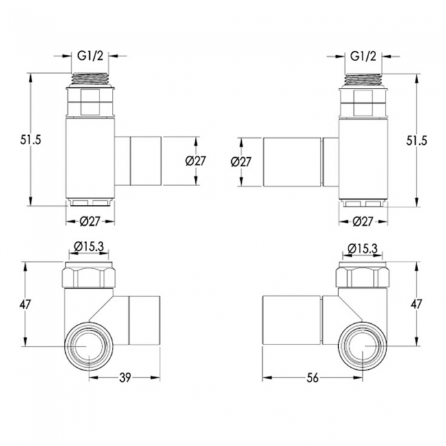 JTP Corner Dual Fuel Radiator Valves Pair Pack - Brushed Black | Product Image JTP Corner Dual Fuel Radiator Valves Pair Pack - Brushed Black
