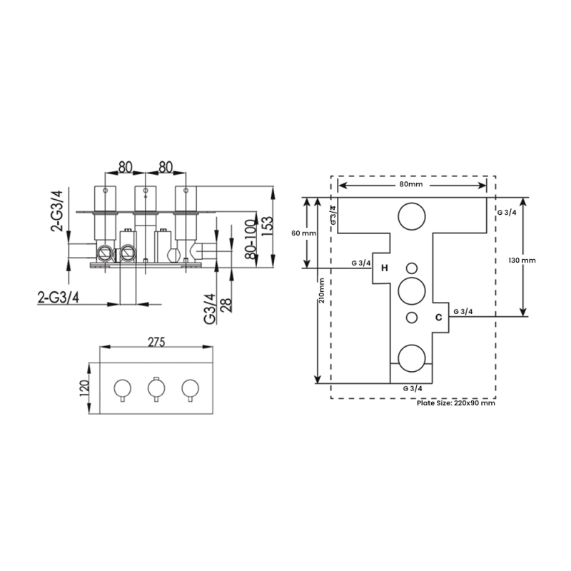 Shower Valve Width275mm