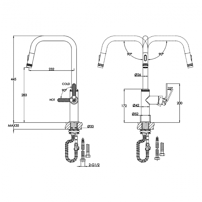 JTP Decor Kitchen Sink Mixer Tap Pull Out Single Lever - Brushed Bronze | Thumbnail Image JTP Decor Kitchen Sink Mixer Tap Pull Out Single Lever - Brushed Bronze