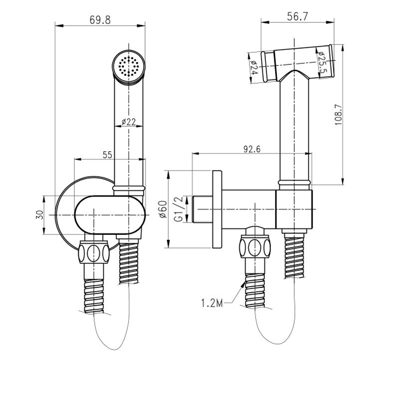 JTP Douche Set with Hose and Safety Shut Off - Chrome