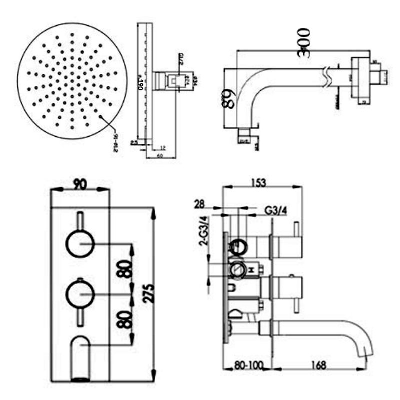 Shower IncludesShower Valve, Fixed Head, Tap Spout