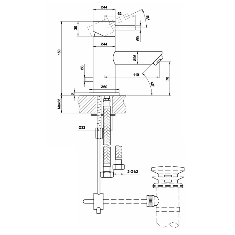 Tap Base to Spout70mm