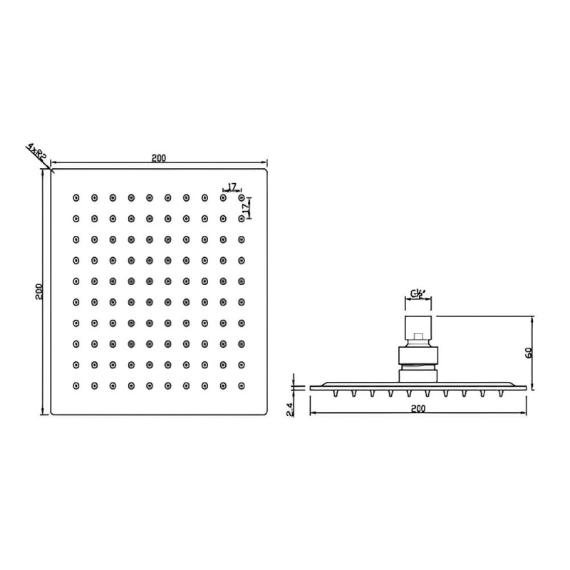 JTP Glide Ultra-Thin Square Ceiling Mounted Fixed Shower Head 200mm x 200mm - Chrome
