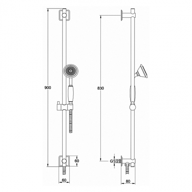 JTP Grosvenor Shower Slider Rail Kit with Single Function Handset - Chrome/Black