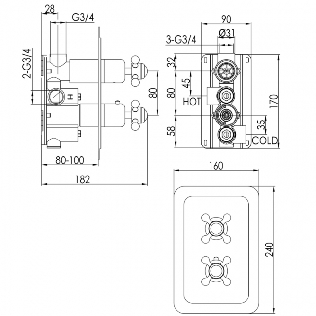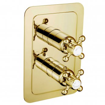 JTP Grosvenor Cross Vertical Thermostatic Concealed 1 Outlet Shower Valve Dual Handle - Polished Gold/White JTP Grosvenor Cross Vertical Thermostatic Concealed 1 Outlet Shower Valve Dual Handle - Polished Gold/White