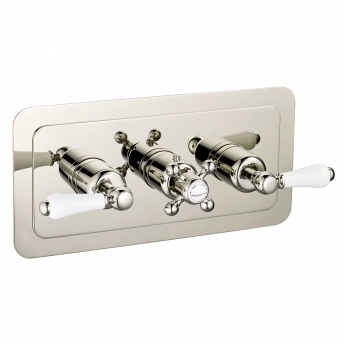 JTP Grosvenor Lever Horizontal Thermostatic Concealed 2 Outlets Shower Valve Triple Handle - Nickel