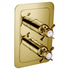 JTP Grosvenor Pinch Vertical Thermostatic Concealed 2 Outlets Shower Valve Dual Handle - Polished Gold/White