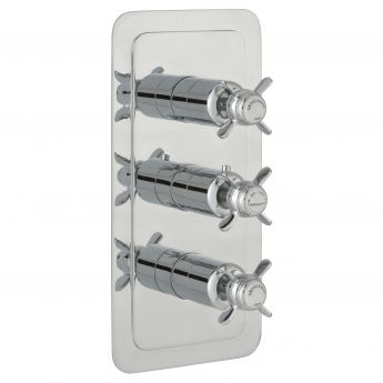 JTP Grosvenor Pinch Vertical Thermostatic Concealed 2 Outlets Shower Valve Triple Handle - Chrome | Product Image JTP Grosvenor Pinch Vertical Thermostatic Concealed 2 Outlets Shower Valve Triple Handle - Chrome