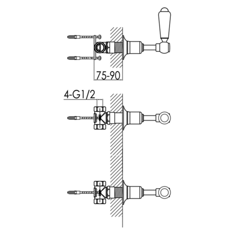JTP Grosvenor Lever Wall Valves Pair - Chrome/Matt Black | Thumbnail Image JTP Grosvenor Lever Wall Valves Pair - Chrome/Matt Black