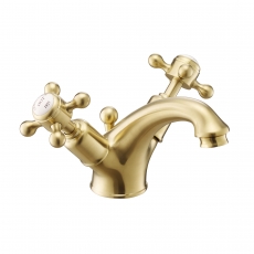 JTP Grosvenor Basin Mixer Tap with Pop Up Waste Cross Handle - Brushed Brass