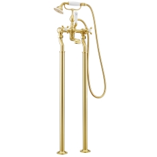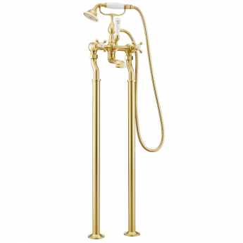 JTP Grosvenor Cross Freestanding Bath Shower Mixer Tap with Kit - Brushed Brass | Product Image JTP Grosvenor Cross Freestanding Bath Shower Mixer Tap with Kit - Brushed Brass