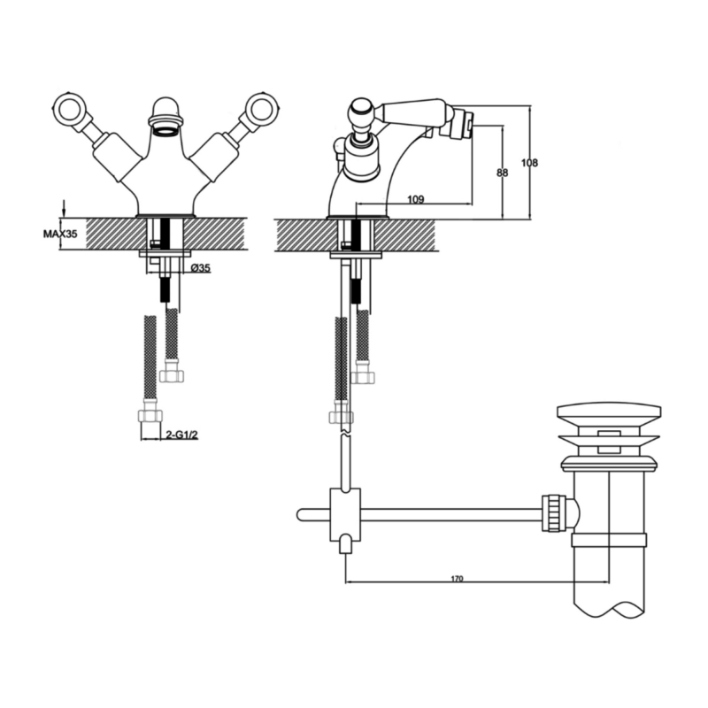 JTP Grosvenor Lever Bidet Mixer Tap with Pop Up Waste - Polished Gold | Thumbnail Image JTP Grosvenor Lever Bidet Mixer Tap with Pop Up Waste - Polished Gold